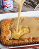 - Transférer le gâteau crumble dans un plat allant au four puis napper de sauce.