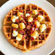- Trên mỗi đĩa, đặt một chiếc bánh quế sau đó chia đều phần phô mai đông, nước sốt đã chuẩn bị và thịt xông khói.